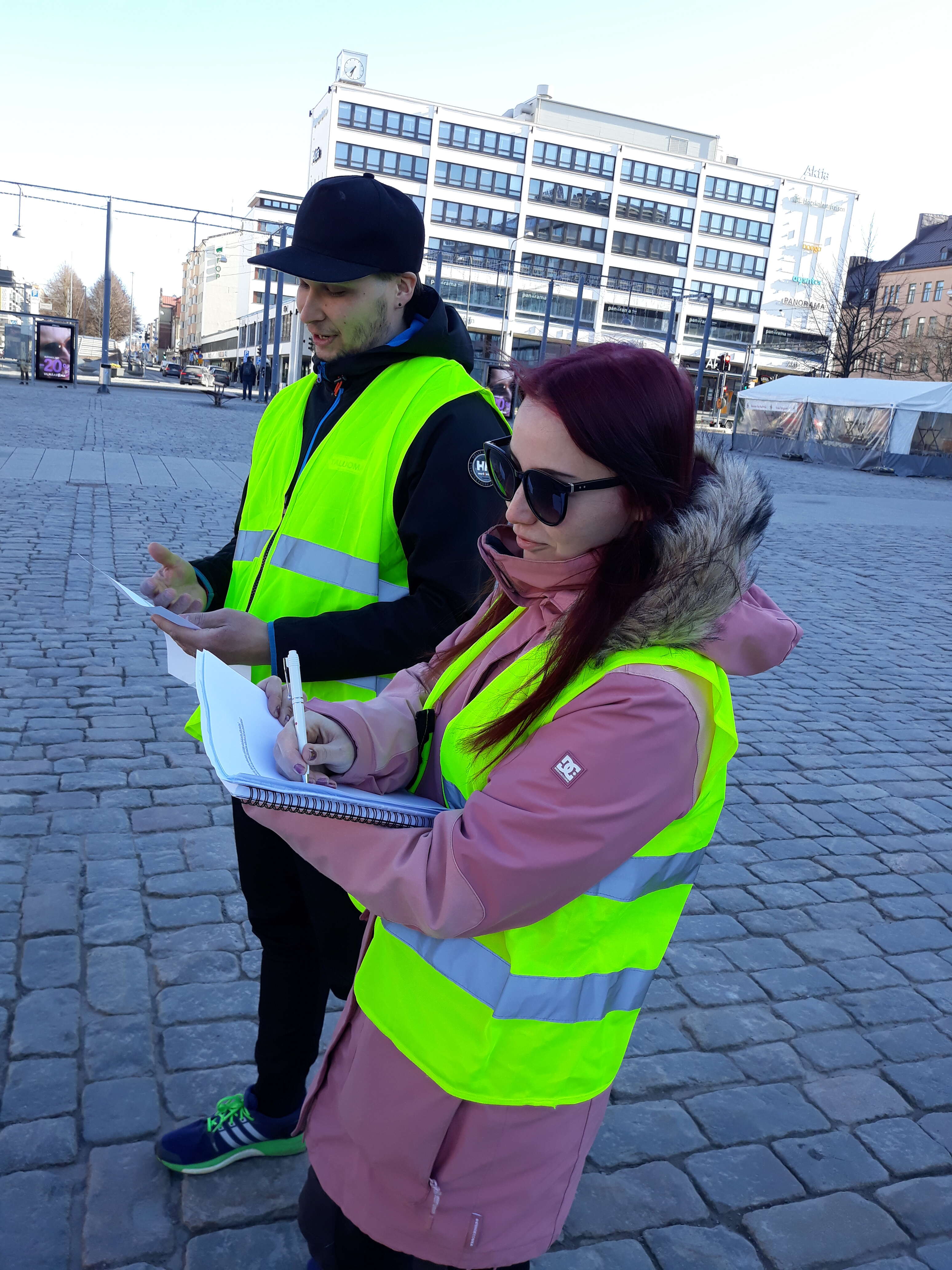 Som intervjuare fungerade kvällsstuderandena Janne, Pauliina, Sirpa och Karoliina inom Vamias kompetensområde för pedagogisk verksamhet och vård av barn och unga. Deras lärare Merja Sparv deltog också samt verksamhetskoordinatorn för Vasa stads rusmedelsförebyggande arbete Merja Huttunen-Metsi.
