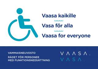 Rådet för personer med funktionsnedsättning i Vasa har sedan år 2015 utmanat olika affärer samt andra organisationer som fungerar i offentliga utrymmen att främja tillgänglighet och jämlikhet genom att bevilja dem tillgänglighetsmärken som tecken på beaktande och främjande av tillgänglighet. Tillgänglighetsmärket förnyades i fjol för att fira tillgänglighetsdagen. Ett märke i enlighet med den nya framtoningen kan man ansöka om hos Rådet för personer med funktionsnedsättning.