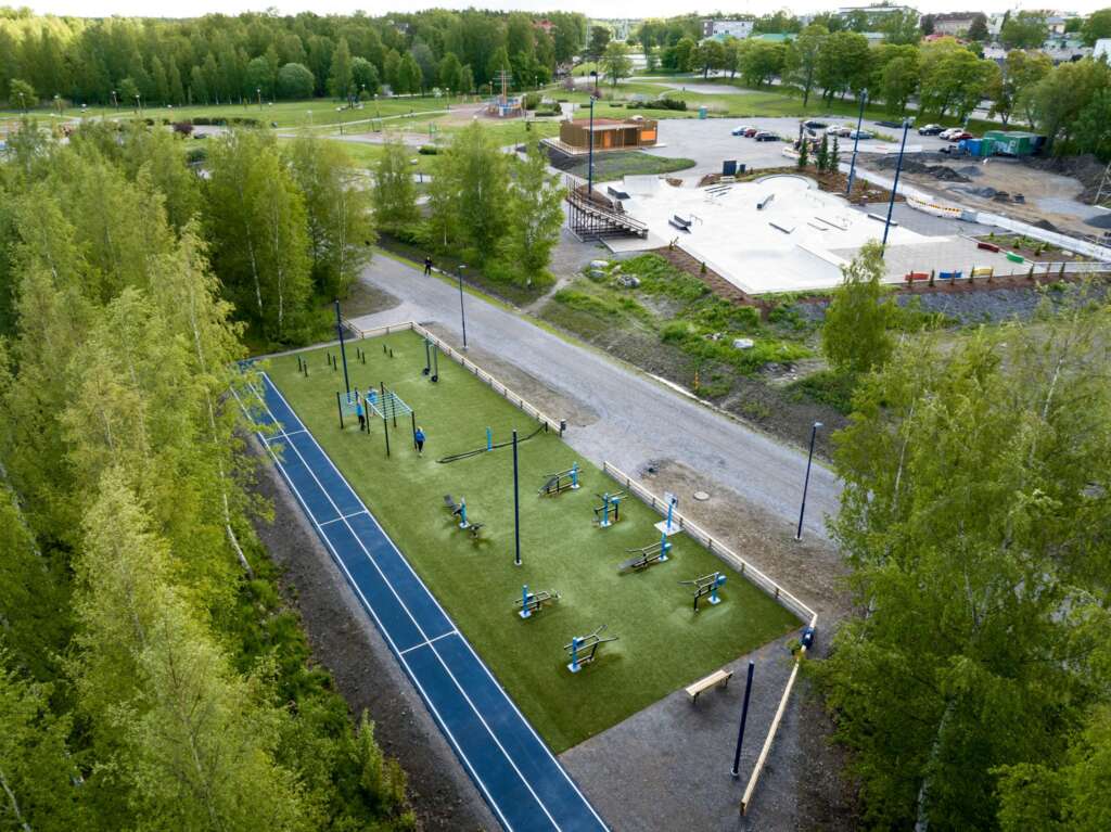 Det nya utegymmet har inhemsk utegymsutrustning med hög kvalitet från David, hopphäckar, street work out-ställningar och tyngdlyftningsstång samt en 50 meter lång löpbana.
