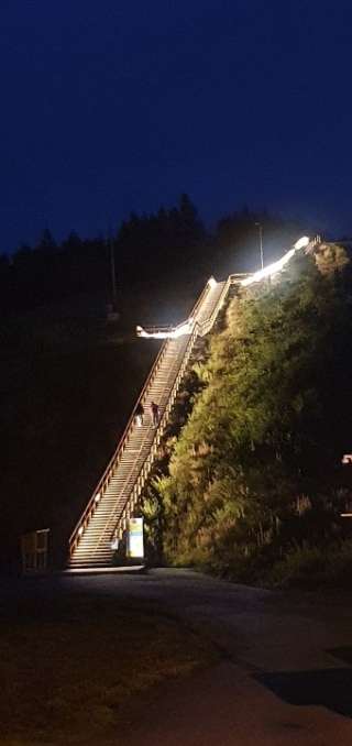 Öjbergets trappa i kvällsbelysning