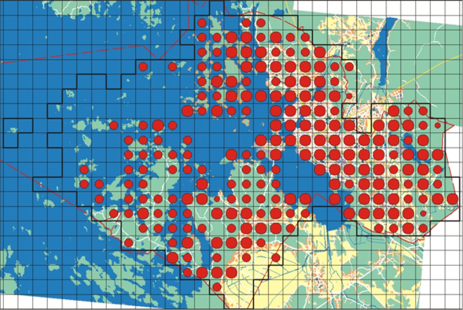 Förekomst i Vasa. Den svartvita flugsnapparen är en allmän art som påträffats som häckande i över 200 rutor under karteringen. Arten är jämnt spridd över hela stadens område och häckar såväl på fastlandet som i skärgården.
