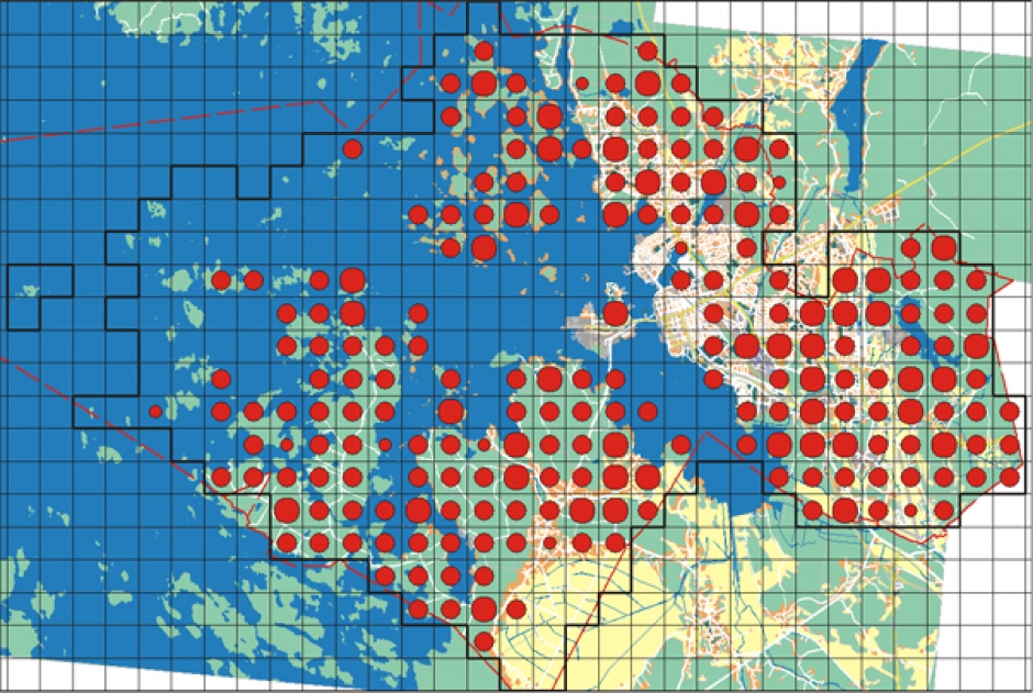 Livsmiljö. Taltrasten häckar i barrskog. Den föredrar gransluttningar där det föru-tom de höga överståndarna också växer unggranar. I medeltal häckar det ca 3,3 par taltrastar per kvadratkilometer, men i Vasas frodigaste friska granbestånd häckar ca 6-7 par/km².