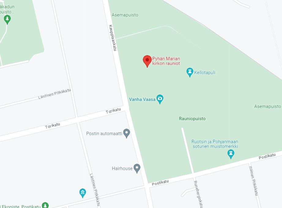 Parkeringsplatser finns på andra sidan gatan i området mellan Torikatu, Postikatu och Läntinen Pitkäkatu.