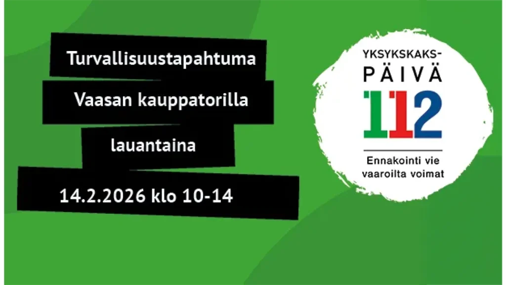 Vasa nödcentral och samarbetsmyndiheterna ordnar tillsammans med medborgarorganisationerna en säkerhetstillställning på salutorget i Vasa. Nu är det en bra möjlighet att se utryckningsfordon och bekanta sig med olika aktörers info-punkter. Tillställningen är riktad till alla åldrar. Välkommen!