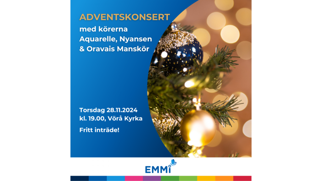 Vörå medborgarinstituts tre körer, Aquarelle, Nyansen och Oravais manskör, sjunger in advent med en gemensam konsert. På repertoaren hörs såväl traditionella som nyare julsånger. Körerna leds av dirigenterna Pernilla Nilsson-Wik, Cajsa-Stina Fagerström och Carl-David Wallin. Fritt inträde. Välkommen!