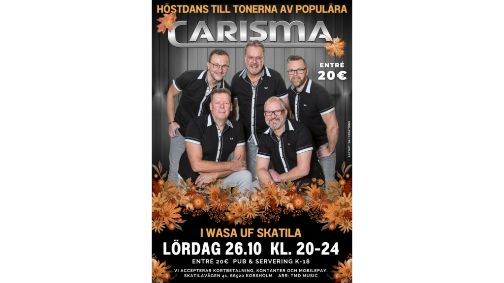 Välkommen på Höstdans till tonerna av populära Carisma i Wasa Uf Skatila