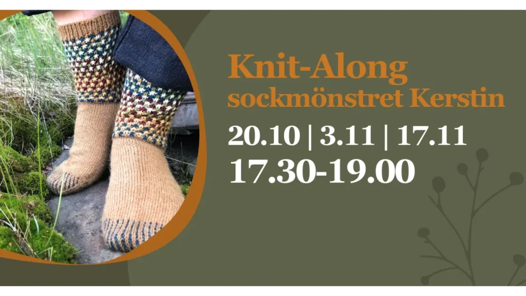 Välkommen att sticka sockan Kerstin tillsammans under tre kvällar i höst. Flerfärgsmönstret i sockans skaft stickas med lyfta maskor, och man behöver bara sticka med en färg i taget. Mönstret lämpar sig för att använda upp restgarner.