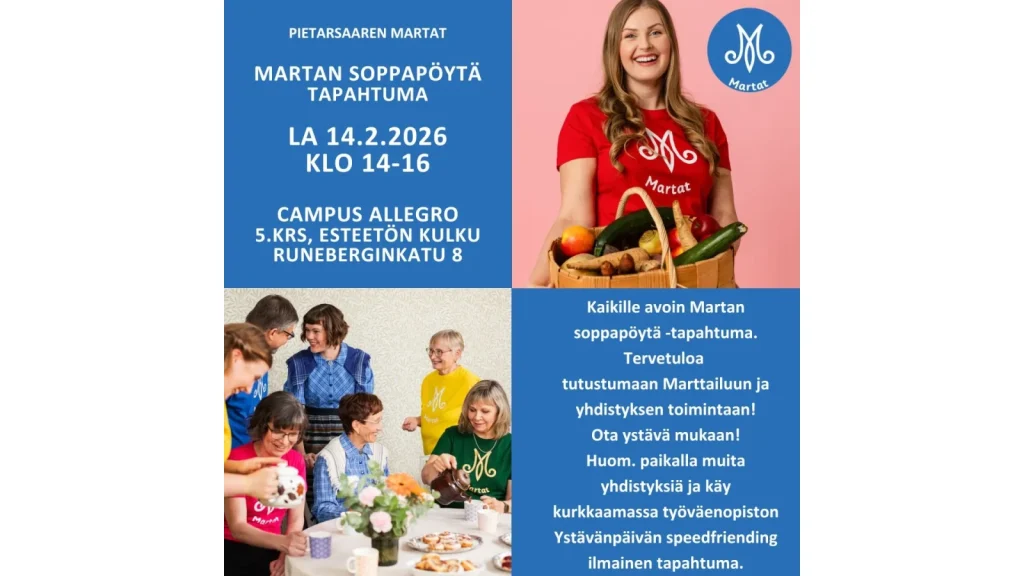 Martat osallistuu Martan soppapöytä teemalla ystävänpäivän tapahtumaan!