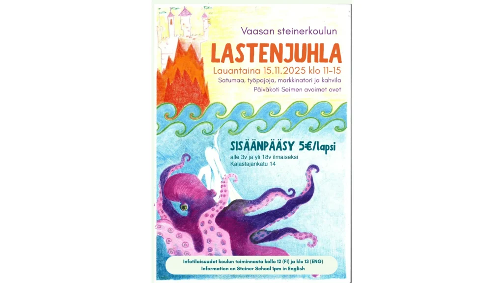 Tervetuloa viettämään riemukasta päivää koko perheen voimin Vaasan Rudolf Steiner -koululle La 15.11. kello 11-15.