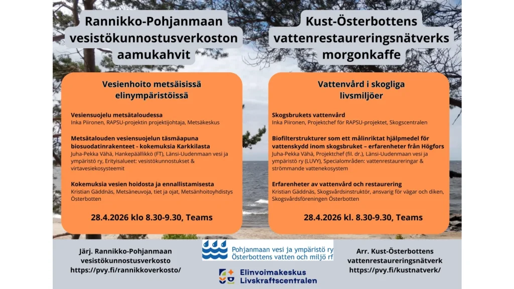Välkommen att delta i Kust-Österbottens vattenrestaureringsnätverks morgonkaffewebbinarier våren 2026.