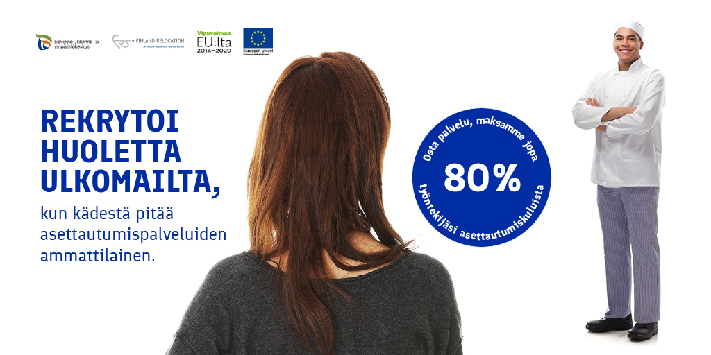 De ekonomiska aspekterna är också tämligen uppmuntrande, eftersom så mycket som 80 % av kostnaderna för tjänsterna täcks av EU-finansiering (ESF) via Rikta kursen mot Finland -projektet. Stödet uppgår till högst 5 000 € + moms och slutsumman (minst 20 %) bekostas av företaget. Tjänsteleverantören är Finland Relocation Services Oy. Tjänsten är tillgänglig till slutet av oktober 2023.