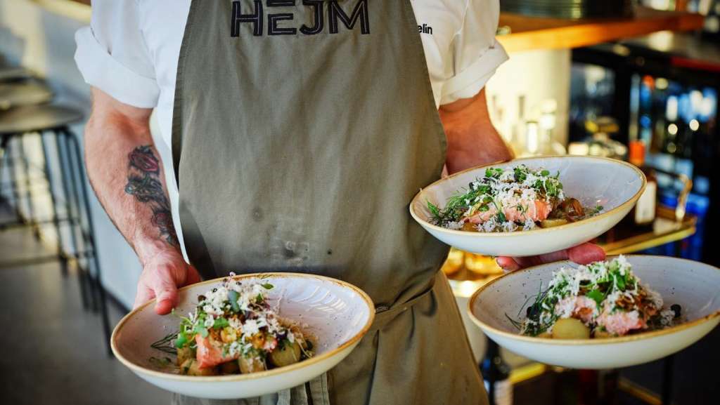 Kom och upplev HEJMs mat och även dryck i matsalen, på den inglasade terrassen eller i den privata eventlokalen på taket.