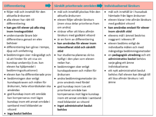 Vad är skillnaden mellan differentiering, särskilt prioriterade områden och individualiserad lärokurs?