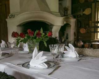Ravintola on avoinna lauantaisin ja ryhmävarauksille ympäri vuoden. Keittiömme ruokaa on saatavilla ryhmille ennakkovarauksesta. Järjestämme myös avoimia illallisia, joihin voi osallistua esimerkiksi ystävän kanssa kahden.