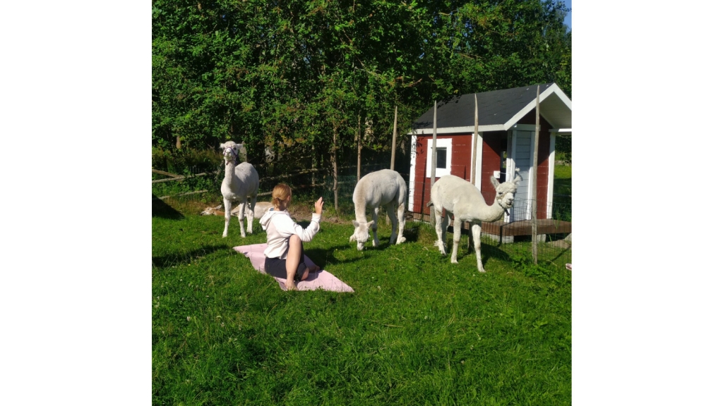 Virkistävä ja rentouttava jooga ulkona alpakoiden ja laamojen hyvässä seurassa.