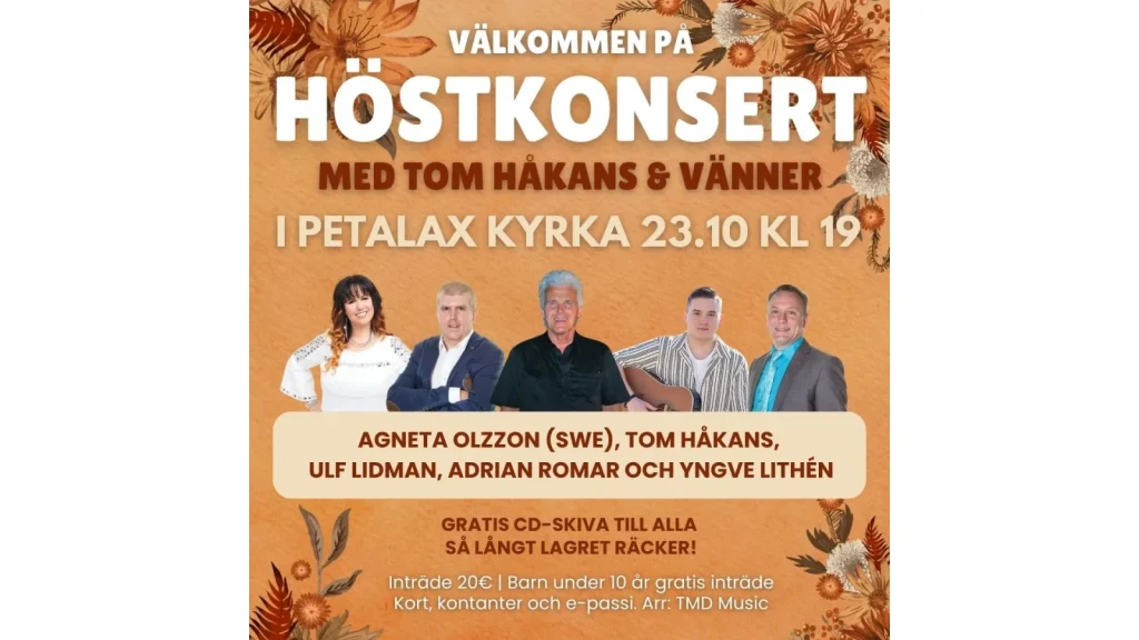 med populära Agneta Olzzon från (SWE), Tom Håkans, Adrian Romar, Yngve Lithén, Gästartist: Ulf Lidman