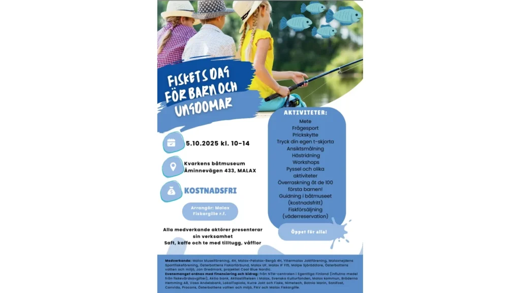 Kalastuksen päivä on palannut Maalahteen ja luvassa on hauska ja tapahtumarikas päivä koko perheelle!