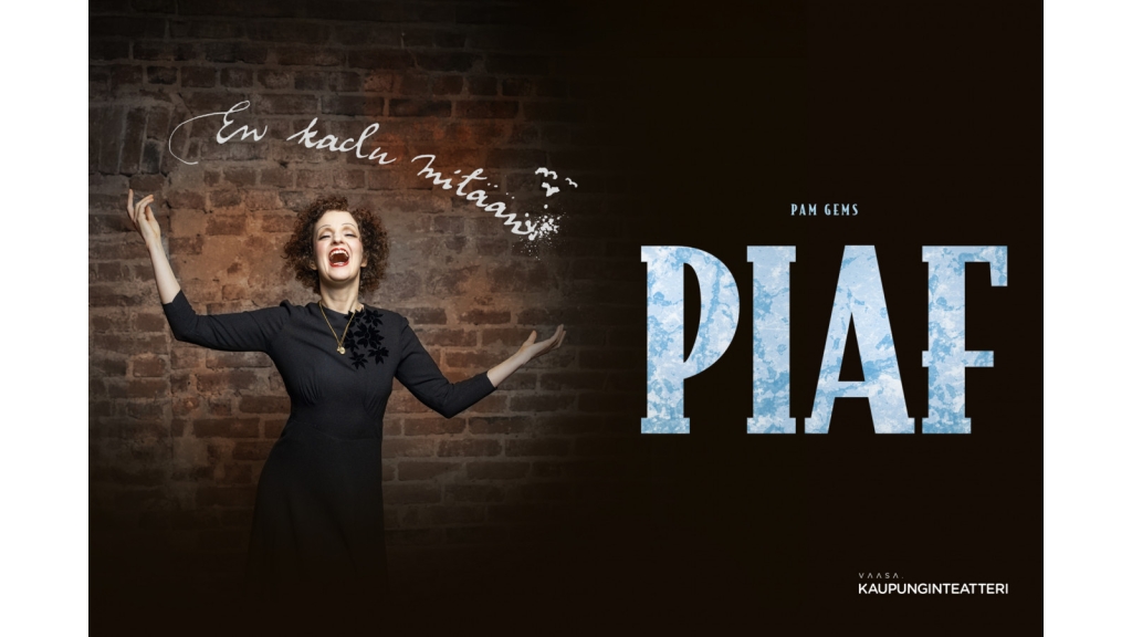Piaf – En kadu mitään Englantilaisen Pam Gemsin musiikkinäytelmä Piaf kertoo Pariisin kaduilta maailman maineeseen nousseen Édith Piafin ainutlaatuisen elämäntarinan. Faktaa ja fiktiota yhdistelevä teos kuvaa intohimoista taiteilijaa hänen uransa hurmioituneissa menestyksen hetkissä ja hauraissa elämän pohjamudissa. Piafin rakkaus elämää, musiikkia ja rakkautta kohtaan kuuluu hänen lauluissaan. Musiikkinäytelmä tuo lavalle upeasta äänestään ja vahvoista tulkinnoistaan tunnetun laulajattaren kuuluisimmat kappaleet, kuten Non, je ne regrette rien, La Vie en Rose ja L’hymne à l’amour. Elämänmakuinen musiikkinäytelmä on kunnianosoitus älykkäälle, elämäniloiselle ja sisukkaalle naiselle, jonka musiikillinen perintö elää edelleen.