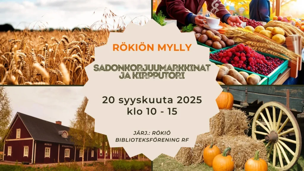 Upeat syysmarkkinat perinteikkäällä Rökiön myllyn alueella kutsuvat yhteisöllisyyteen makujen, tuoksujen ja kohtaamisten merkeissä. Haluamme tuoda esiin paikallisesti tuotettuja ja kotimaisia tuotteita. Myös kirpputorimyyjät ovat tervetulleita.
