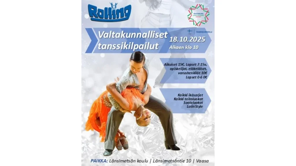 Valtakunnalliset tanssikilpailut vakio- ja latinalaistansseissa kaiken ikäisille