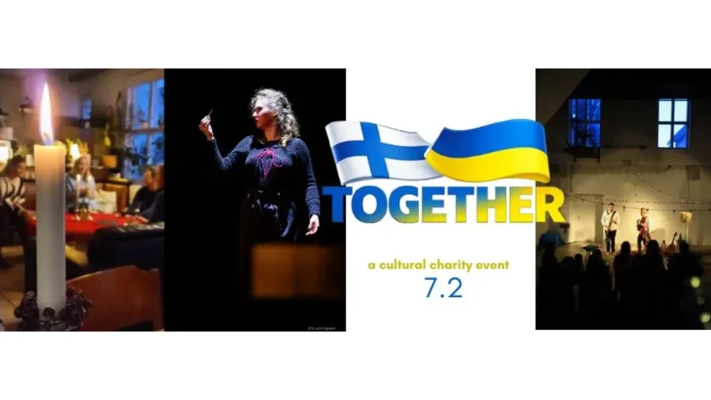 Ukrainalaista teatteria, musiikkia, open stage, käsityöläismarkkina, luova työpaja ja ukrainalaista ruokaa – kokoonnutaan ja tuetaan ukrainalaisia hyväntekeväisyysjärjestöjä. Kaikki tuotot lahjoitetaan Finland Ukraina Ostrobotnia Kalyna rf:lle ja hyväntekeväisyysjärjestö Feeniksin Kilta ry:lle.