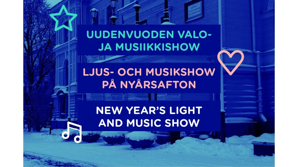 Uudenvuoden valo- ja musiikkishow 31.12. klo 18–21.30 Vaasan kaupungintalon edustalla