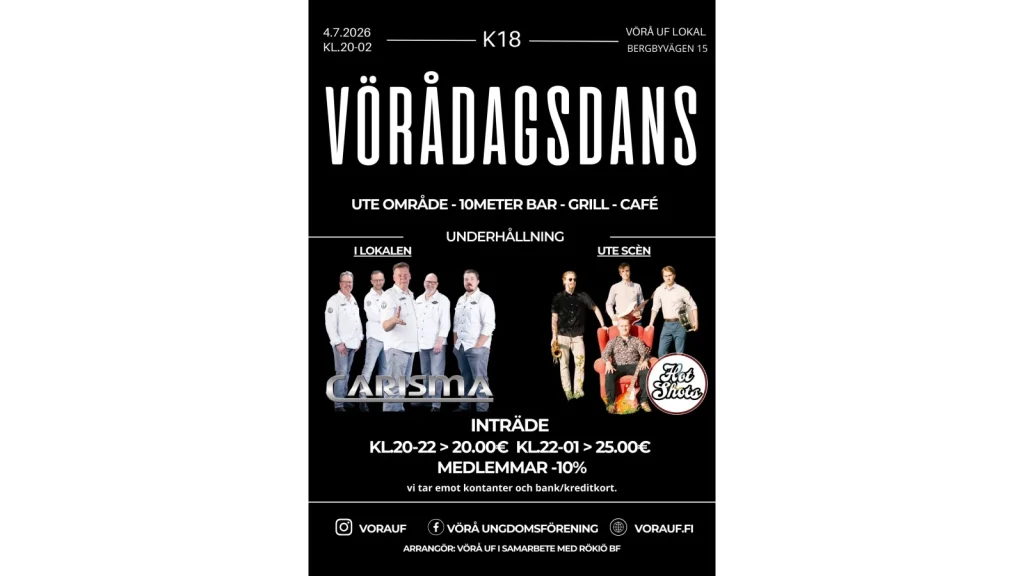 Paikka: Vöyrin nuorisoseura – Bergbyvägen 15, 66600 Vöyri