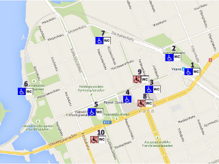 WC-tilojen saavutettavuustietojen tarkoituksena on kertoa asiakkaille, kuinka helposti ja esteettömästi he voivat asioida kyseisissä paikoissa. Tutustu karttaan: